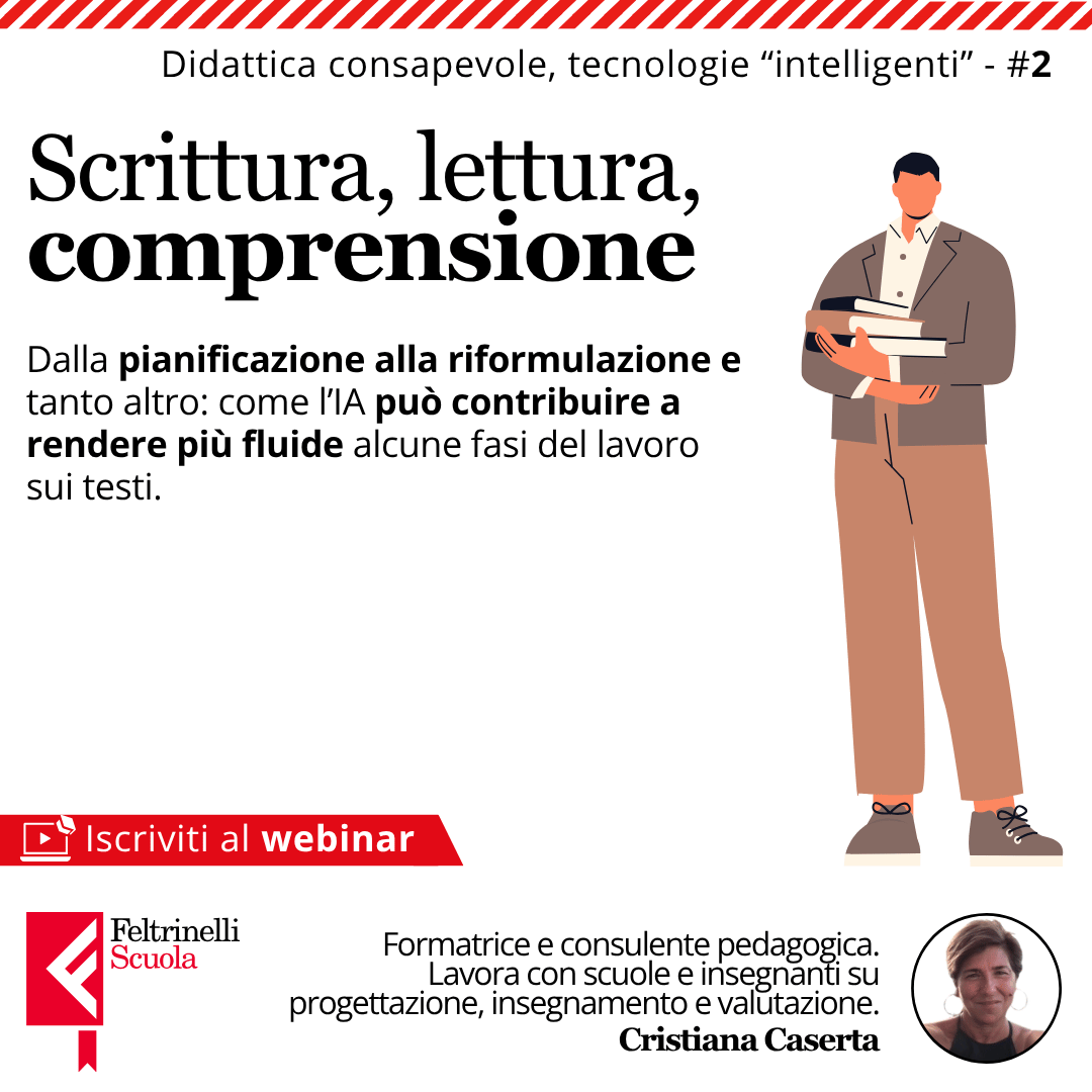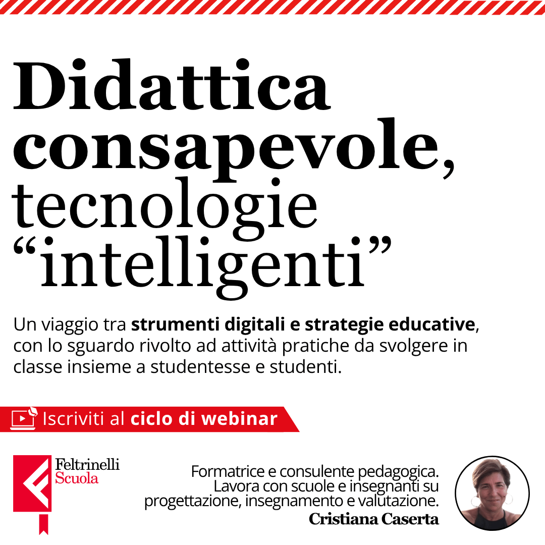La conduzione dei webinar sarà affidata a Cristiana Caserta, docente di materie letterarie a Palermo, consulente Ed-Tech & Humanities e formatrice nella scuola: negli anni ha sperimentato e raccontato pratiche didattiche innovative, diventando anche una voce autorevole nel dibattito su scuola, digitale e pedagogia.
